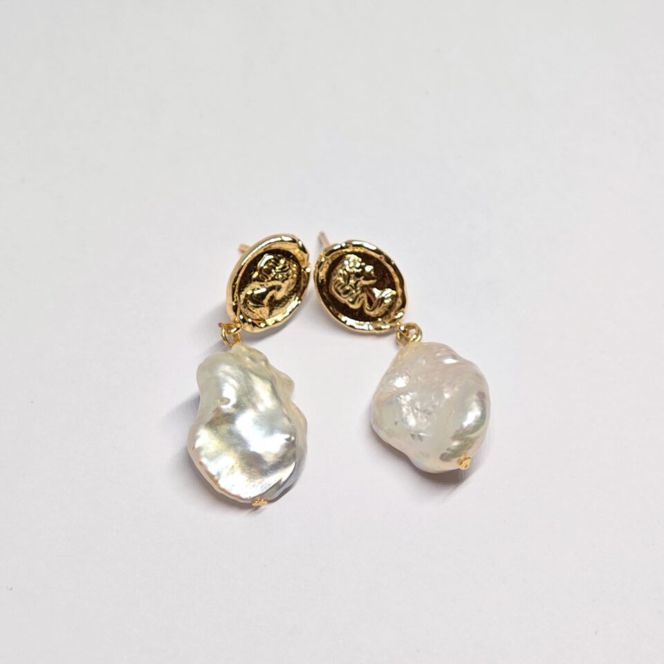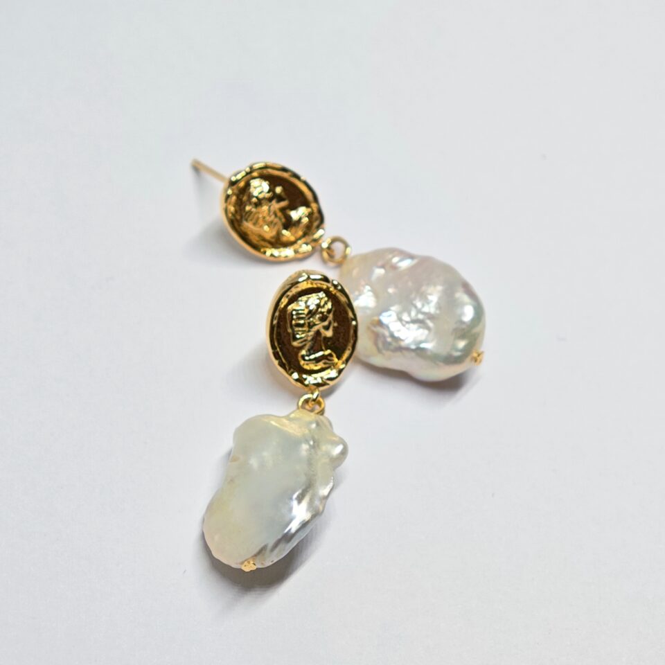 Pendiente de Perla Barroca con Moneda de Reina