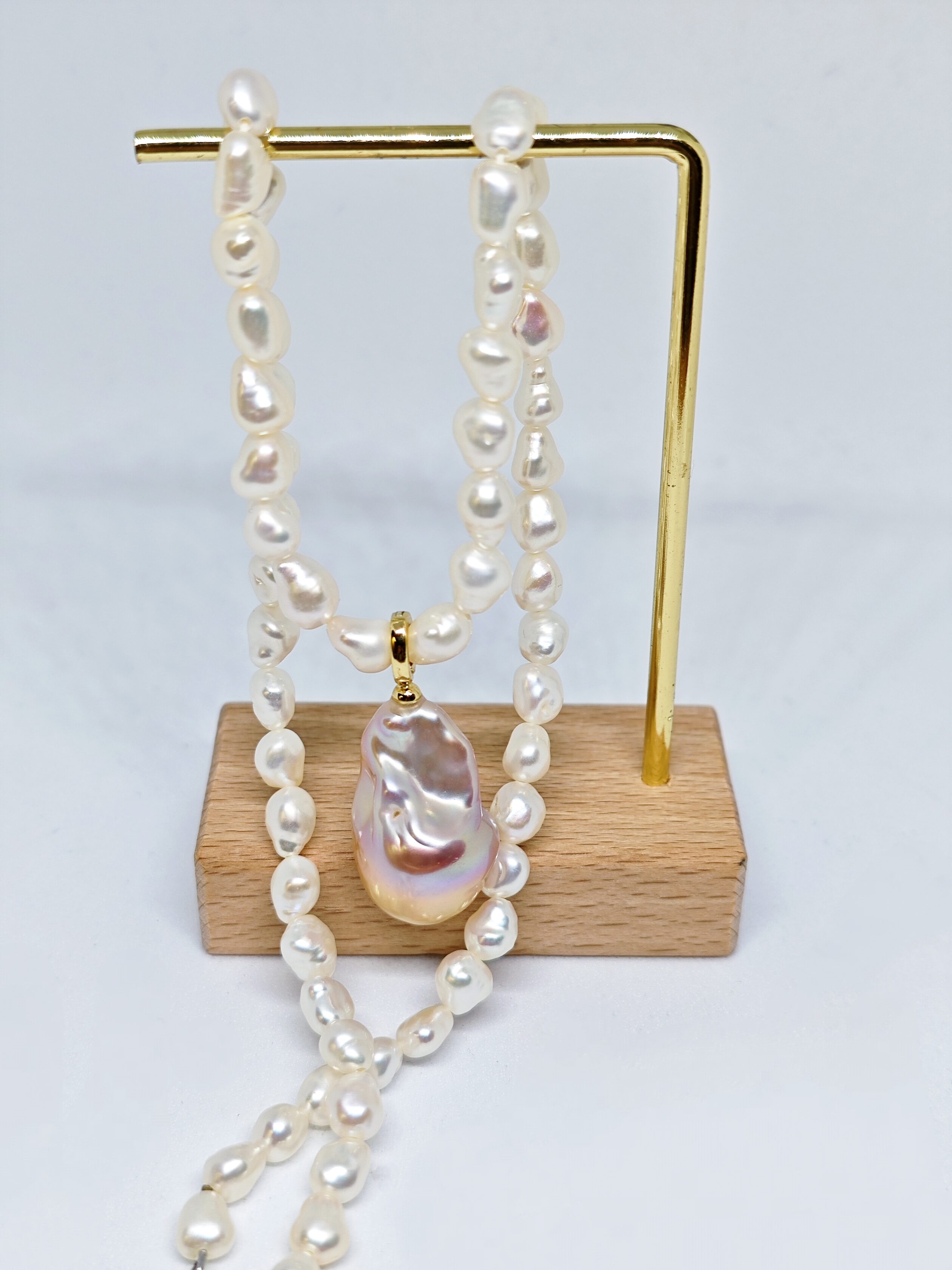 Este colgante de perla barroca es completamente natural, sin tintes ni alteraciones artificiales.